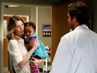 There are a few relationships sailing along on smooth waters, however, Lexie Grey and Dr. Avery seem to be getting along quite well, and the Parental Triumvirate of Callie, Arizona, and McSteamy (who seems to have had some work done on himself by a surgeon much less talented than himself) whirl into work with cute chubby baby in tow, having apparently ironed out their authority issues with each other. Given that Callie declared last season that she got three votes in the menage a trois, I wonder if her two partners have finally capitulated to her.