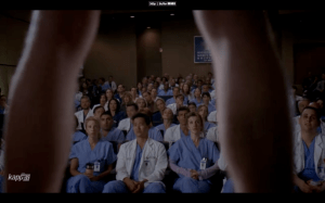 Of course Mark Sloane jumps up, announces he’s from plastics, and asks why she isn’t considering a reconstruction. Oh, oh, pick me! Pick me! I know! Because that wouldn’t make for an interesting Grey’s Anatomy episode, Mark! Well, she says, she wants to restore full urinary and sexual function, and reconstruction doesn’t give him this. Yeah, Mark. I’ll just say here, in greater context than a hospital show, that trans men like me know full well that genital reconstruction generally just approximates appearance, often leaving out the ability to do things folks generally do with their crotch regions. So it’s at this point that I’m grateful, somehow, that the narrative is non-trans located; he’s a cisgender man who through no fault of his own (like say, a bad motorcycle accident) lost his junk to save his life. GA has a long history, after all, of pitting residents against their patients vis a vis some perceived moral high ground. This case is free from that paradigm, and free from the other tendency on Grey’s to misrepresent the autonomy of disfigured or disabled patients who are looking to medicine (or for medicine to restrain itself) for help with maintaining their own status quo quality of life. Nobody in the room doubts or judges Ryan for wanting what the other men in the room have. Instead, we doubt the woman of color on the stage. Not in her capacity as a surgeon, but in her ideas. It’s a notion that Sloane, for the majority of the episode, just can’t wrap his mind around. The rest of the doctors in the room, however, are there with her, applauding, no less.