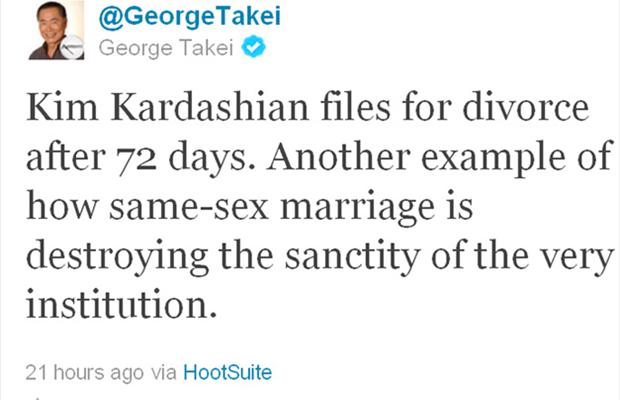 So in the midst of the joking, out trots same-sex marriage advocates. If memory serves, I remember similar jokes made when Britney Spears divorced, when the reality stars of The Bachelor called it quits, and when The Today Show held a contest for spouses-to-be to win an entire wedding and honeymoon. The scourge of the short-lived marriage is almost its own tool in the toolkit of the marriage equality activist.