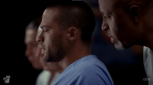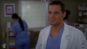 Alex overhears the amazing resident from Utah telling a friend on her phone that Robbins isn’t going to select her for the fellowship because some other guy is much more appealing with his African kids program. I knew the African kids would come through for Karev! Alex for once, is sitting in a bar and doesn’t blurt anything out.