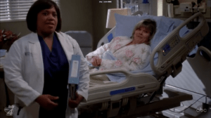 So it turns out that George’s mother went to some other hospital in Seattle so she wouldn’t have to return to the place where her husband and son died. Now she’s got a complication, however, so begrudgingly she shows up to fix what turns out to be bad scar tissue. Sheesh, they could have at least left a clamp or towel inside her. Scar tissue? My questions here really is why she’s all by herself—aren’t there four or more sons in this family? She does a little catching up with Bailey and Meredith and we’re quietly reminded that a lot has happened since T.R. left the show at the end of season 5. What’s he even doing now? I picture him on the set of some bad sexy horror remake, but actually, he’s only got one acting credit, as a guest on Law & Order: SVU. That would put any mom in the hospital.