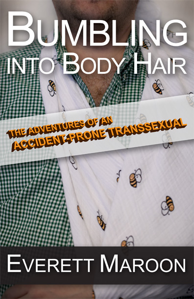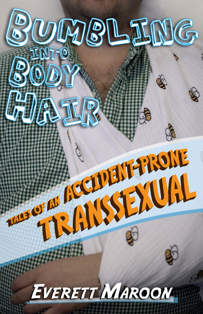 Okay, I get it. I wanted to resist, and say something like, people can read Bumbling and Transsexual, so what more do they need? I wanted to point out that this tiny image is going to be presented next to the printed title and a short description of the memoir. I was attached to this image, I wanted to see stacks and stacks of this book with my silly digitally enhanced chest on the cover—I don’t have that much chest hair, folks.