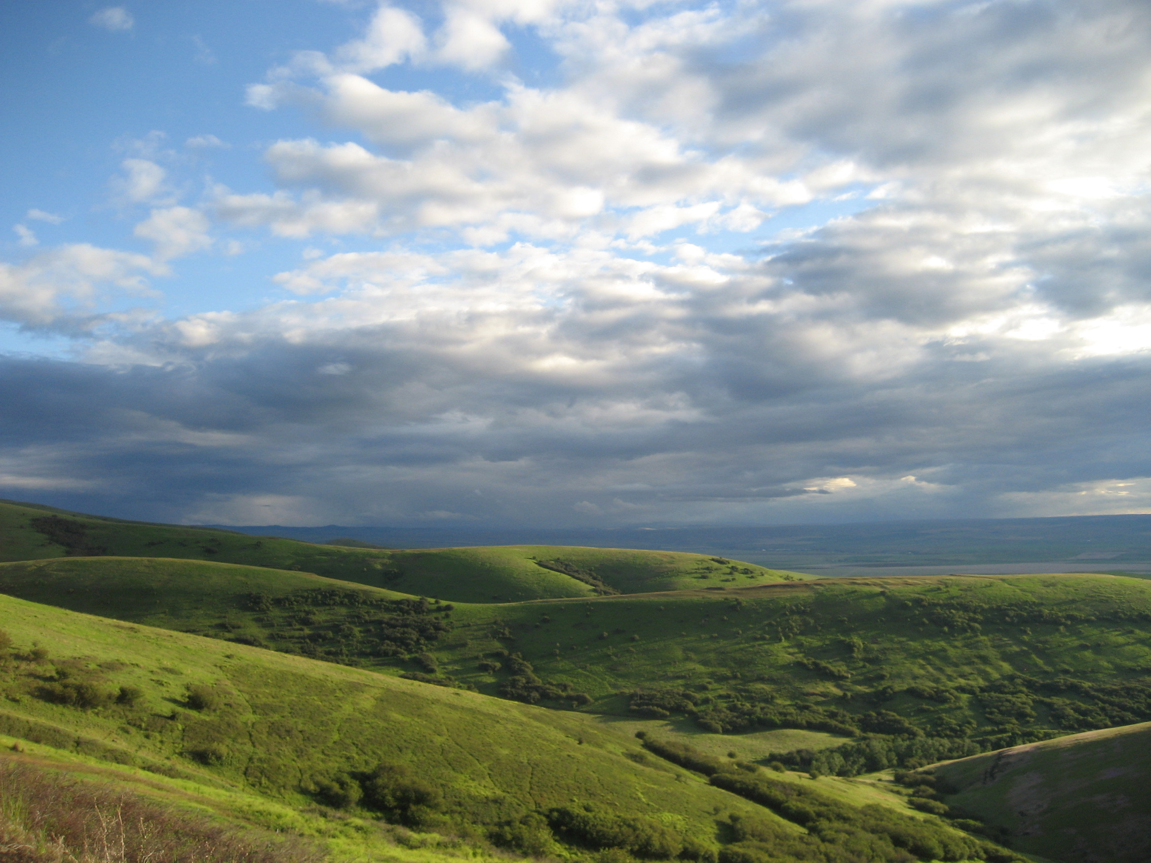Then we saw a rainbow off our port side. As the sun faded, the rainbow lost the shorter end of the color spectrum, leaving only pinks and reds. We drove through the Blue Mountains, then the Wallowa Mountains, and it occurred to me that you couldn’t put two more unlike mountain systems any closer to each other. The Blues are covered in sage and scrub brush that looks like soft velvet from the highway, while the Wallowas seemed barren, rocky, so jagged they cut the fat clouds of the late spring storm. I caught my first glimpse of ball lightning in what seems like years, as rain falling from the sky typically barely makes it to the ground in Walla Walla. I will note though that we had a fairly wet spring. Wet for the desert, that is.