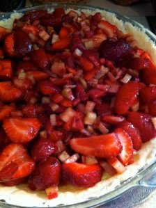 It’s finally strawberry season in the Wallas, after a cold, damp spring. So on this sunny first day of summer, I give you my strawberry-rhubarb pie recipe, mostly made up from my own head (with a nod to my grandmother’s pie crust recipe). Enjoy with a lovely glass of homemade lemonade!